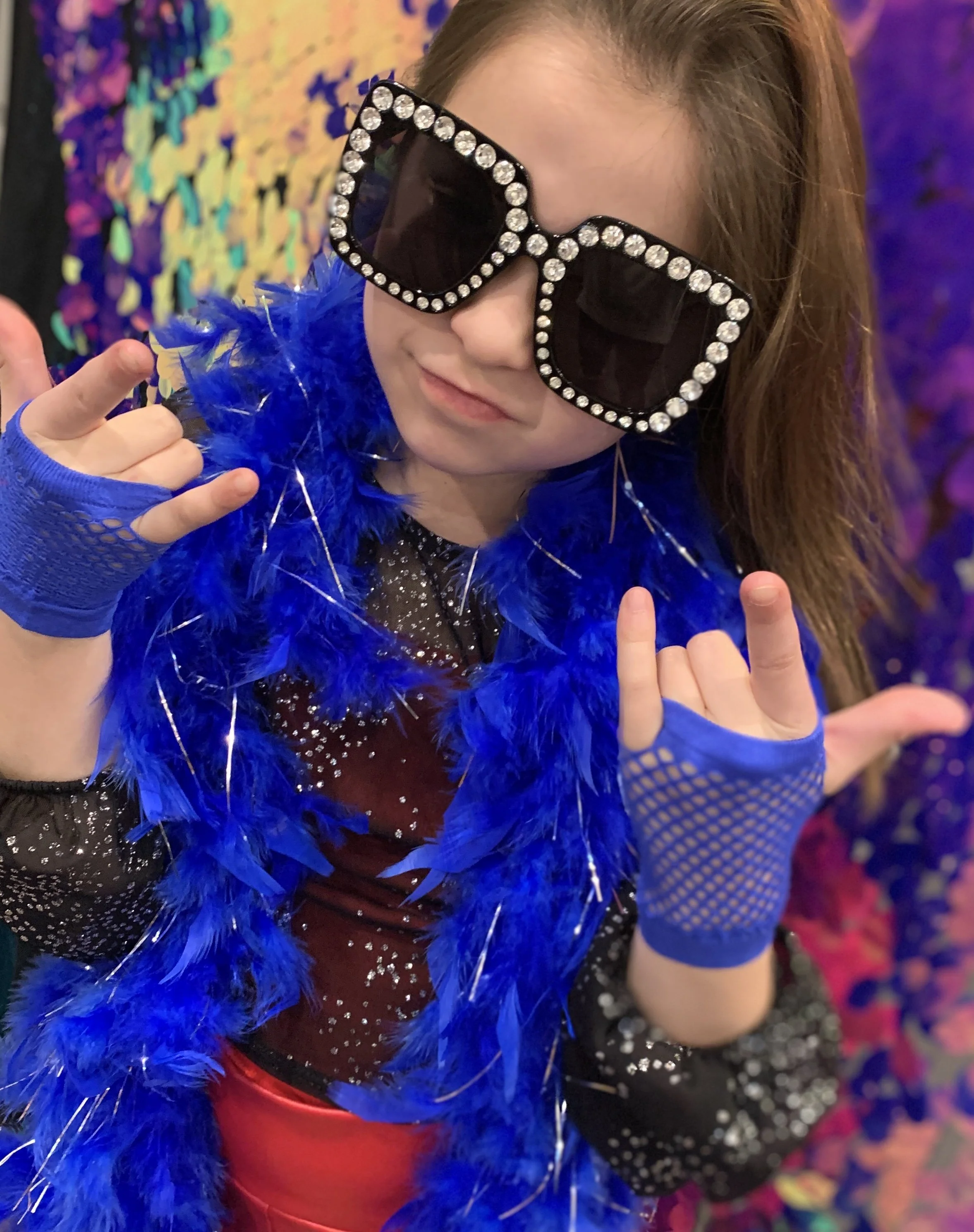 ▪️ Rolling Rack of Diva Clothing (boas, sunglasses, etc. full of sparkle, shine, & sequins)